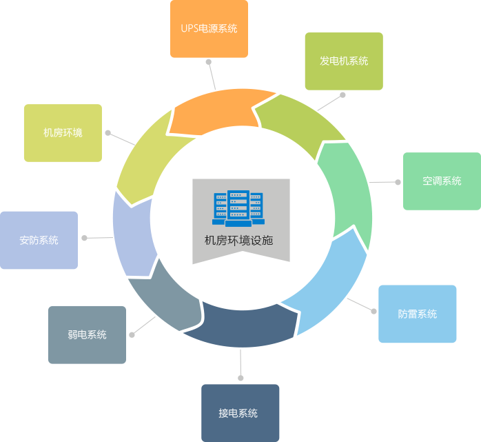 機(jī)房環(huán)境設(shè)施運(yùn)維服務(wù),主要針對(duì)機(jī)房?jī)?nèi)的供配電系統(tǒng)(含UPS電源系統(tǒng)及發(fā)電機(jī)組系統(tǒng))、空調(diào)系統(tǒng)、消防系統(tǒng)、防雷及接電系統(tǒng)、弱電系統(tǒng)、安防系統(tǒng)及機(jī)房環(huán)境集中監(jiān)控系統(tǒng)的維護(hù)及保養(yǎng)服務(wù)。通過(guò)對(duì)機(jī)房?jī)?nèi)各系統(tǒng)的基礎(chǔ)設(shè)施的正確維護(hù)和保養(yǎng),保障機(jī)房設(shè)備穩(wěn)定、可靠、節(jié)能運(yùn)行,確保網(wǎng)絡(luò)系統(tǒng)、服務(wù)器及存儲(chǔ)系統(tǒng)的運(yùn)行環(huán)境,延長(zhǎng)設(shè)備的生命周期,降低設(shè)備的故障率,保障業(yè)務(wù)系統(tǒng)的正常運(yùn)行。