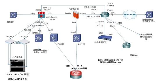 由于業(yè)務(wù)的發(fā)展需求需要利用到更大的背板帶寬等網(wǎng)絡(luò)資源,某法院將原來的250網(wǎng)段的網(wǎng)關(guān)地址(x.x.250.1位于7600系列路由器)做了調(diào)整改動(dòng),現(xiàn)放在原來使用的思科6800系列交換機(jī)(帶有萬兆寬帶板卡)的vlan1接口上,并將7600路由器的相連端口設(shè)置成同網(wǎng)段地址。改動(dòng)后,本地內(nèi)網(wǎng)網(wǎng)絡(luò)無誤,并且可以訪問到其他的分支機(jī)構(gòu)服務(wù)器。但卻訪問不了遠(yuǎn)端分支機(jī)構(gòu)訪問內(nèi)網(wǎng)的250刀片服務(wù)器網(wǎng)段地址。