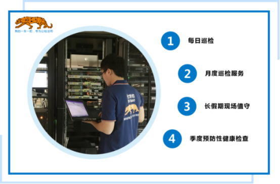 定期巡檢分為:每日巡檢、月度巡檢服務(wù)、長(zhǎng)假期期現(xiàn)場(chǎng)值守、季度預(yù)防性健康檢查。